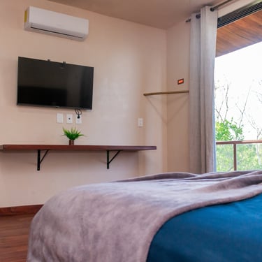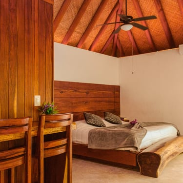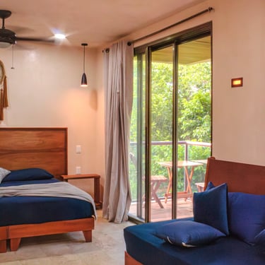 Vive una escapada de conexión y tranquilidad en la selva. Durante dos noches, alójate en una acogedora suite con cama king, aire acondicionado y vistas a la jungla.