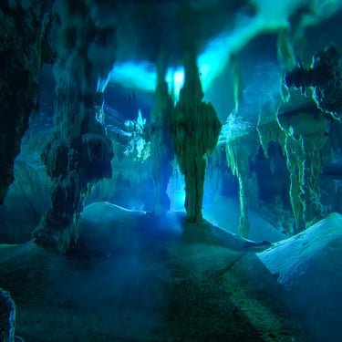 Durante el día, exploren un cenote tipo cueva oculto entre raíces y estalactitas, perfecto para relajarse y nadar en aguas cristalinas.