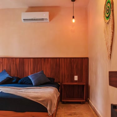 Descansa en la Suite Yaakun, habitación con terraza privada, cocineta y jacuzzi al aire libre rodeado de naturaleza, con una ambientación especial Romance Maya en la habitación: pétalos, velas y detalles que encienden el alma.